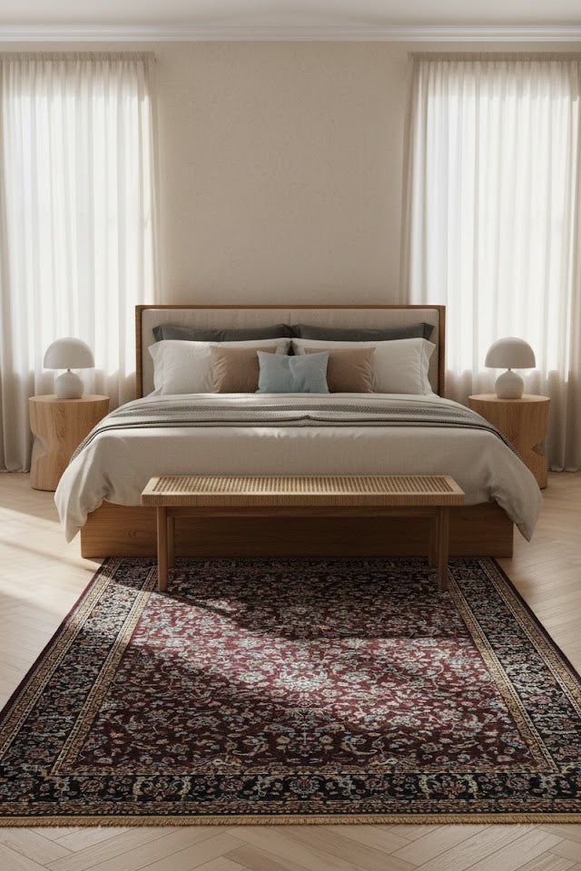Herat Vintage is a timeless traditional design carpet inspired by classic Persian all-over floral compositions. The rich wine-maroon base is intricately filled with fine floral motifs, creating a balanced and continuous pattern that feels elegant, calm, and deeply rooted in heritage design.