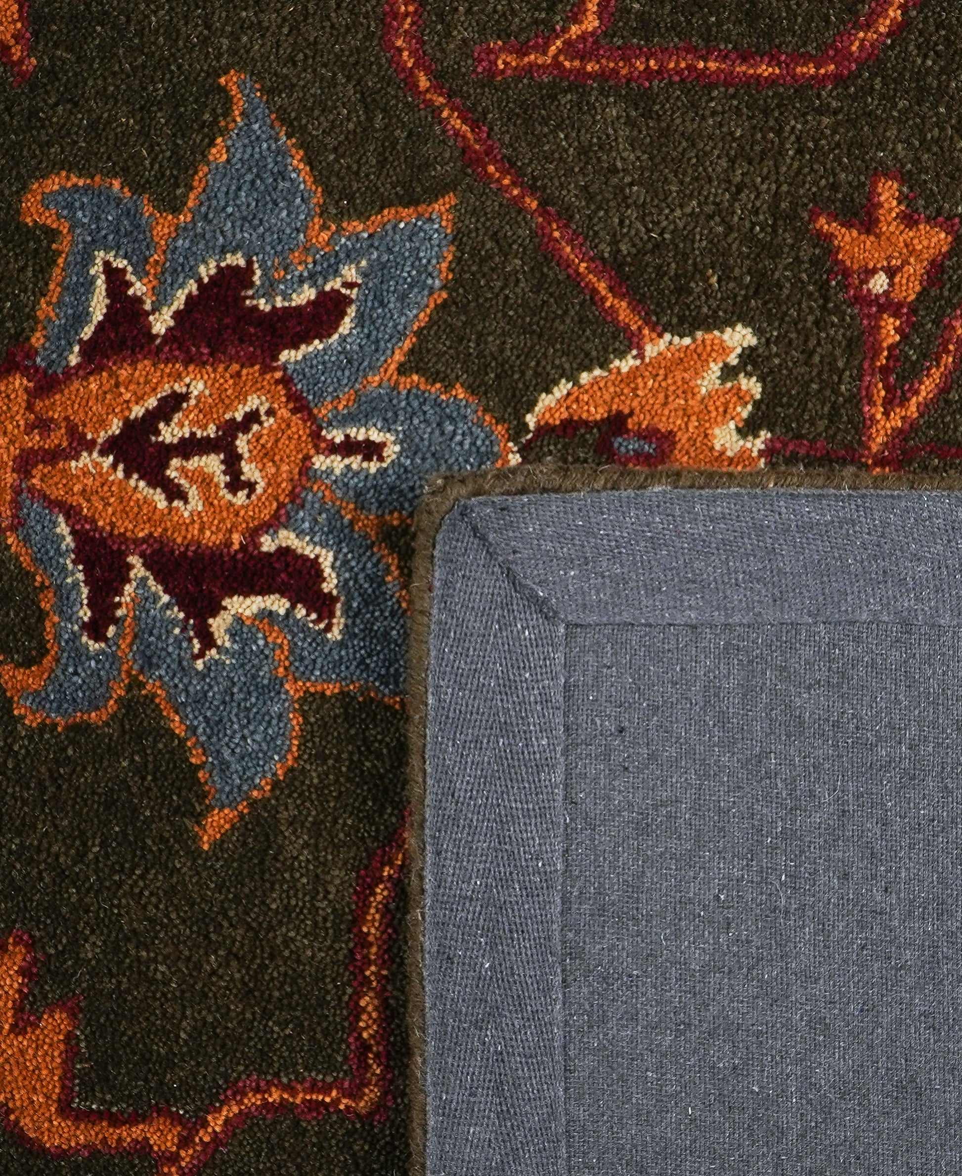 Kashan is a premium hand-tufted Persian style rug inspired by the timeless elegance of classic Kashan carpets. Featuring a rich olive green field framed with a deep maroon border, this rug showcases intricate floral vines, symmetrical motifs, and traditional detailing that reflect true Persian craftsmanship.